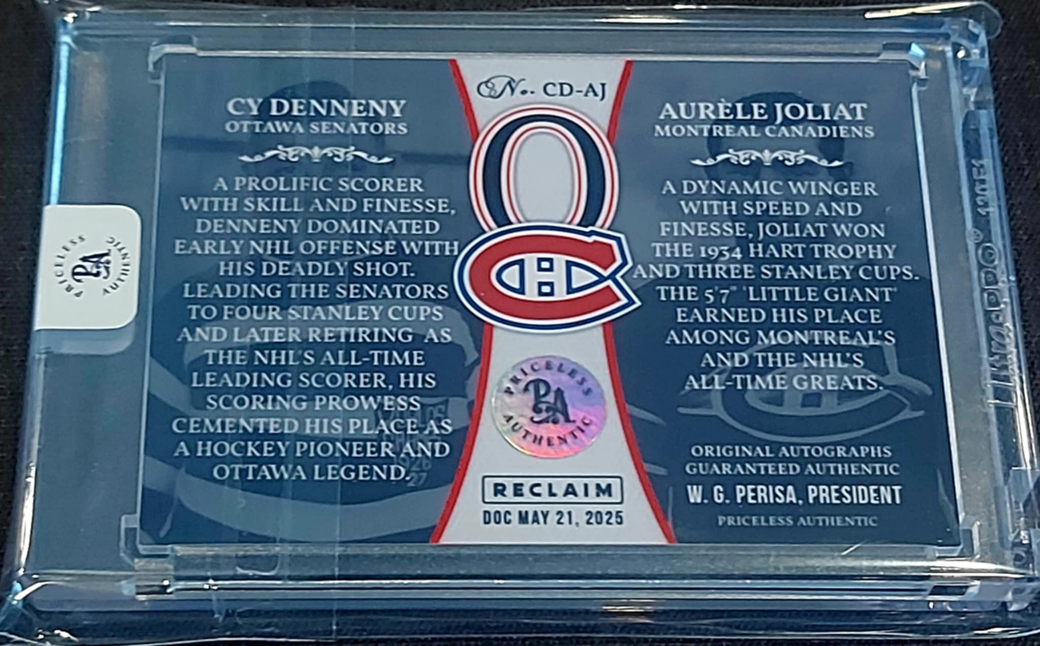 1/1 CY DENNENY & AURELE JOLIAT Ottawa & Montreal DUAL AUTO Card