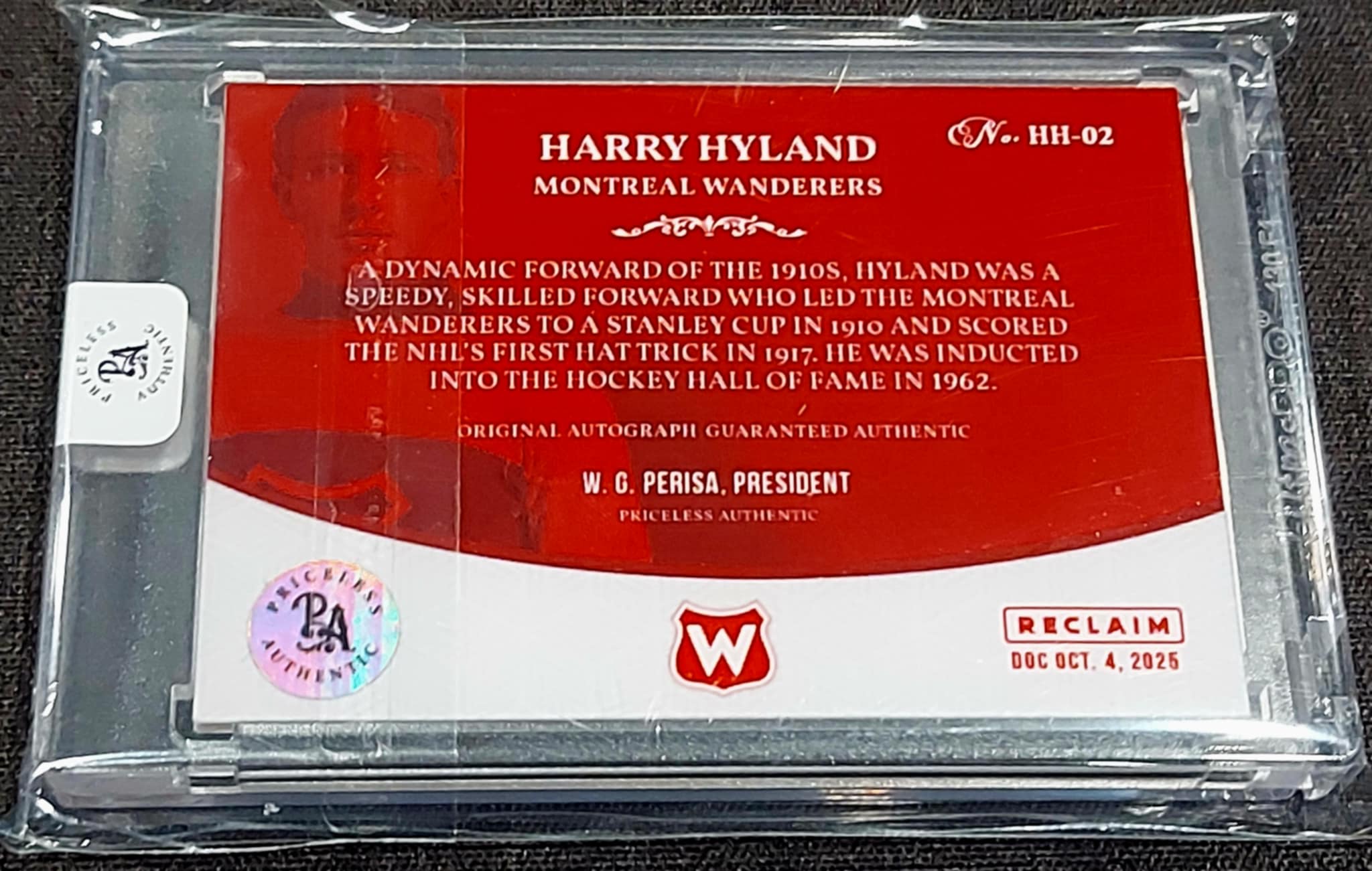 1/1 HARRY HYLAND Montreal Wanderers AUTO & Inscribed "Wanderers" AUTO CARD