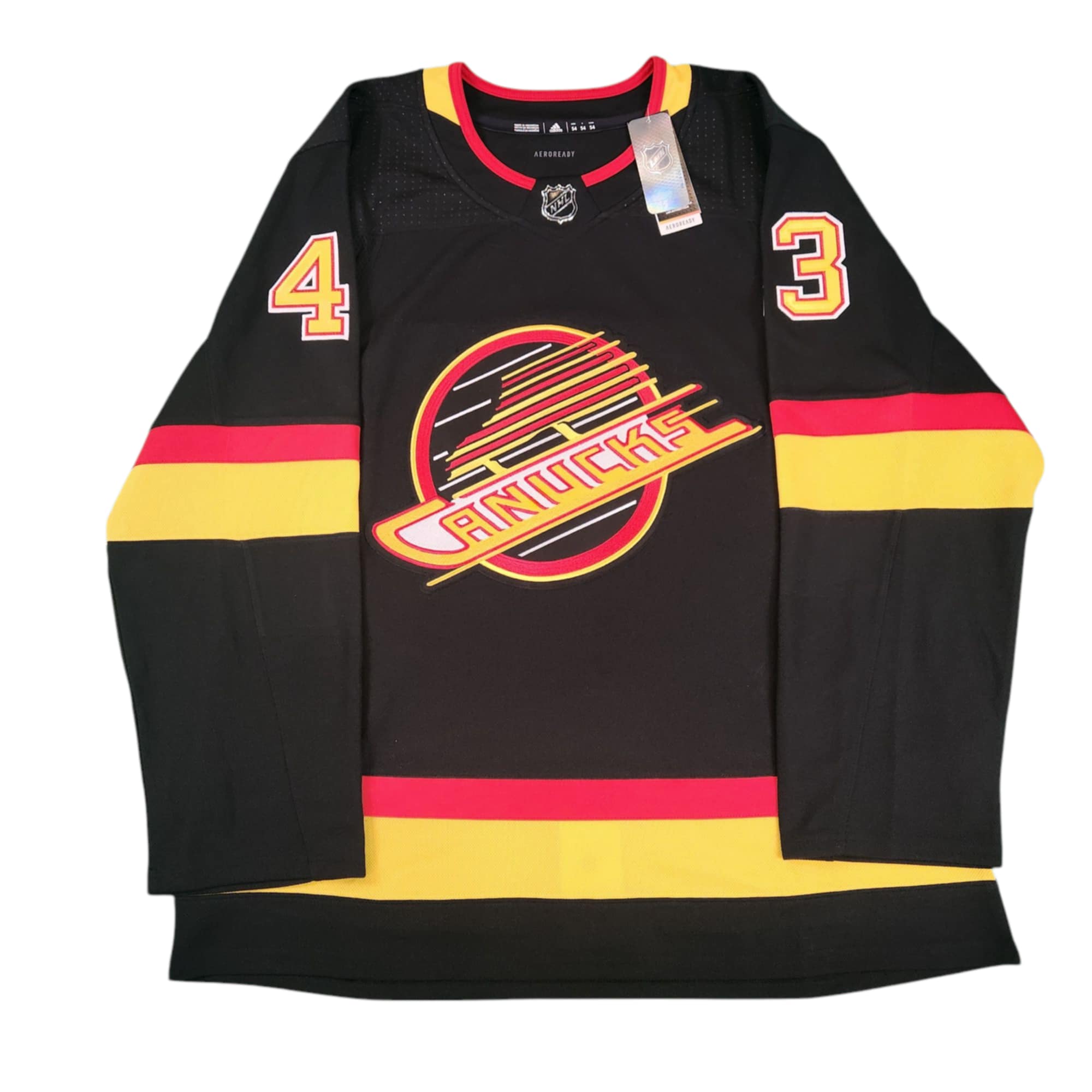 Available for purchase is this stunning 1/1 Quinn HUGHES Signed & Painted Vancouver Canucks Alternate Jersey.